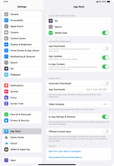 Press the indicator next to "App Downloads" to turn the function on or off.