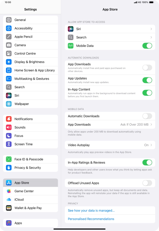 2 Turn automatic synchronisation of apps and app content on or off