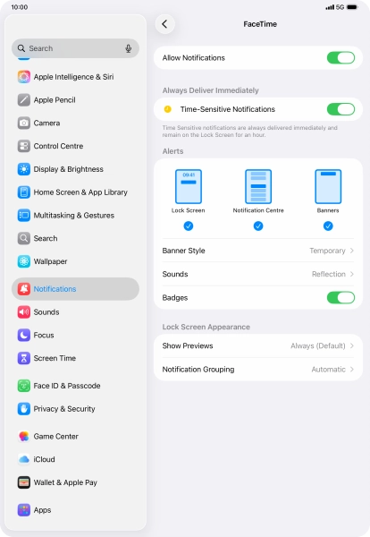 Press the indicator next to "Time-Sensitive Notifications" to turn the function on or off.