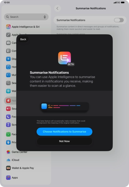 Press the indicator next to "Summarise Notifications" to turn the function on or off.