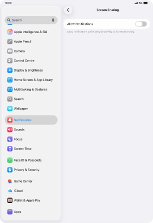 Press the indicator next to "Allow Notifications" to turn the function on or off.