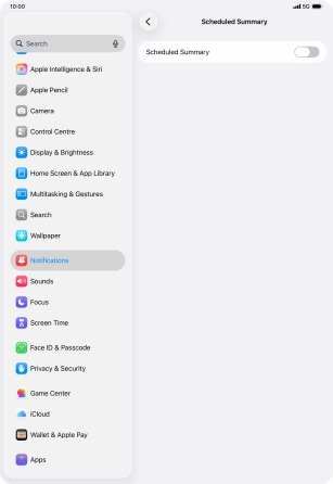 Press the indicator next to "Scheduled Summary" to turn on the function and follow the instructions on the screen to set the notification summary.