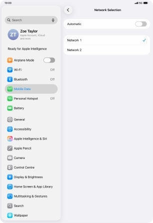 Press the indicator next to "Automatic" to turn automatic network selection on or off.