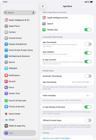 Press the indicator next to "App Downloads" to turn the function on or off.