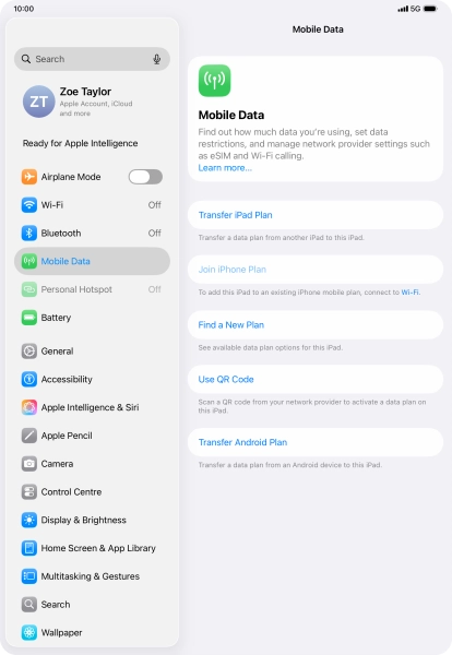 Press Mobile Data.