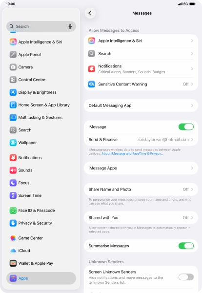 Set up your tablet for iMessaging