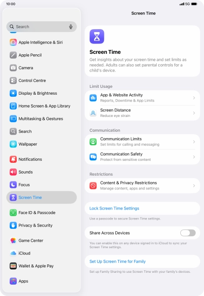 Press Screen Time and optionally select the required member of your family group.