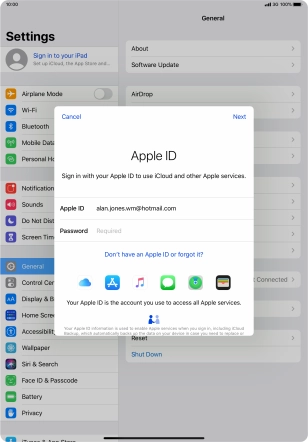 If you don t have an Apple ID, press Don't have an Apple ID or forgot it? and follow the instructions on the screen to create an Apple ID.
