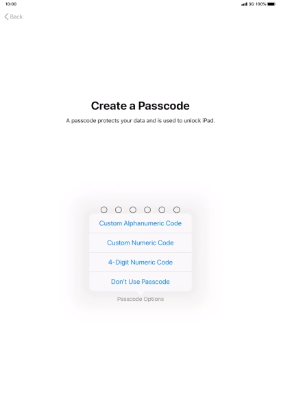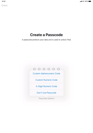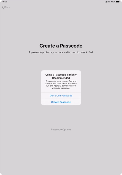 Follow the instructions on the screen to turn on use of lock code or press Don't Use Passcode.