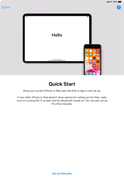 Follow the instructions on the screen to transfer content from another device running iOS 11 or later or press Set Up Manually.