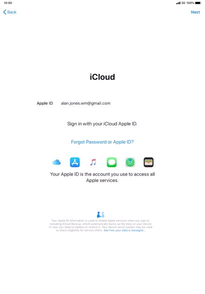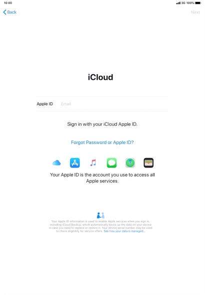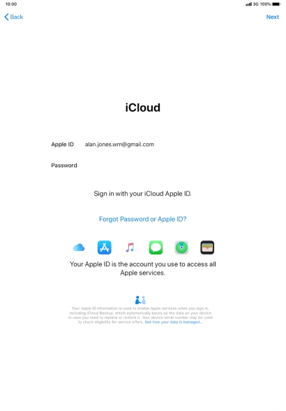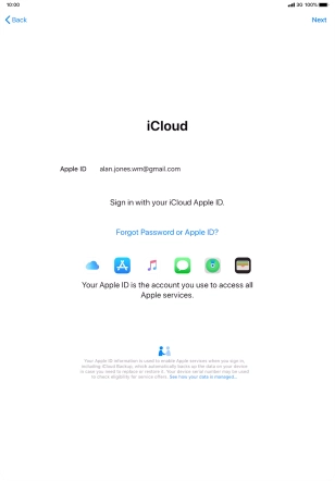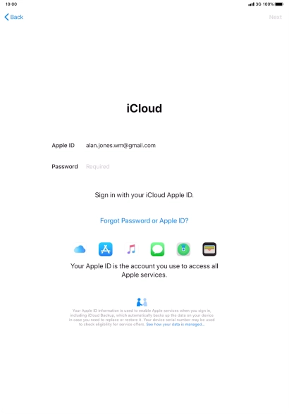 Press the field next to "Apple ID" and key in the username for your Apple ID.