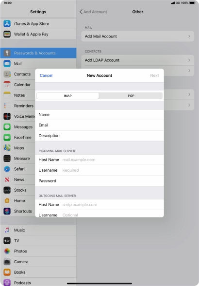 Set up your tablet for POP3 email