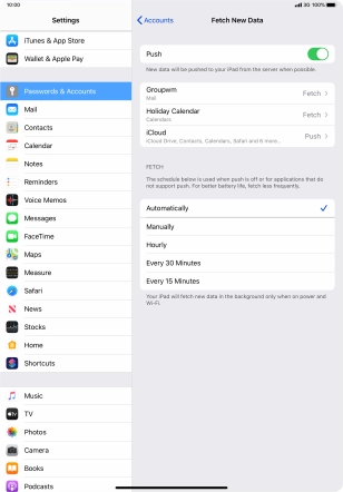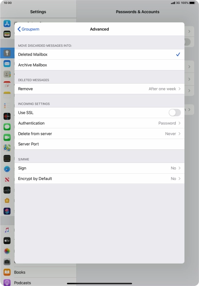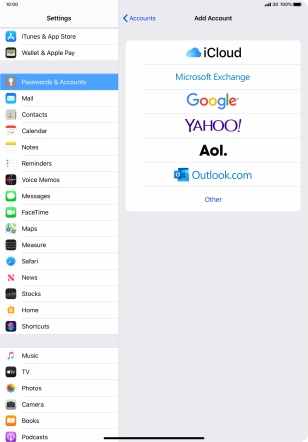 Press the required email account and follow the instructions on the screen to select settings for the specific account.