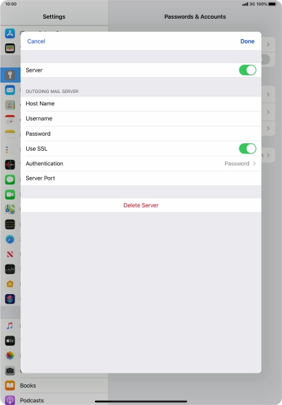 Press Password and key in the password for your email account.