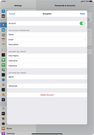 Press the name of the email account you've just set up.