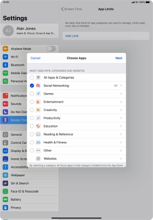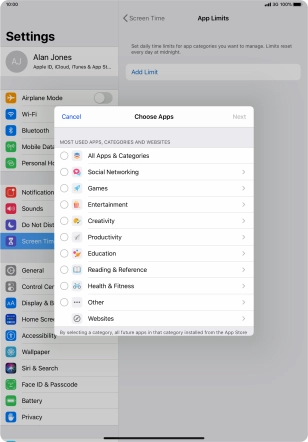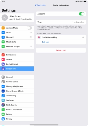Using Screen Time you can get an overview of how much you use your tablet and set time limits on the use of selected apps.