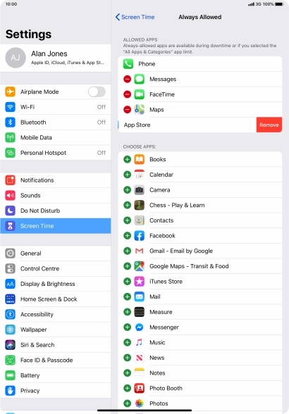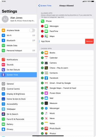 Press the remove icon next to the required app to remove it from the list of allowed apps during Downtime.
