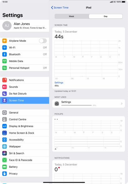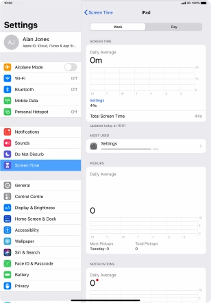 Using Screen Time you can get an overview of how much you use your tablet and set time limits on the use of selected apps. To use the function, you need to turn on Screen Time.