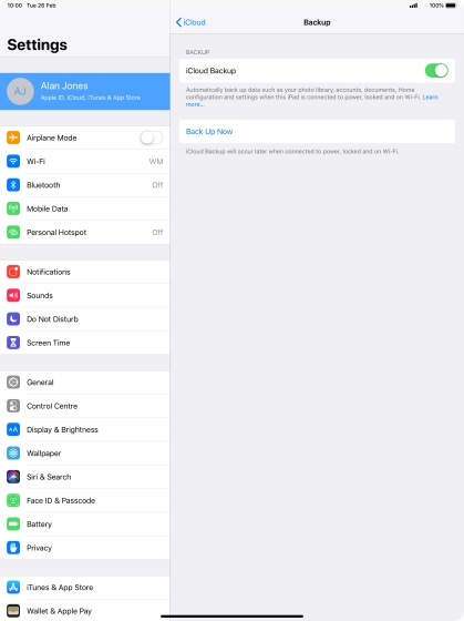 Press iCloud Backup.