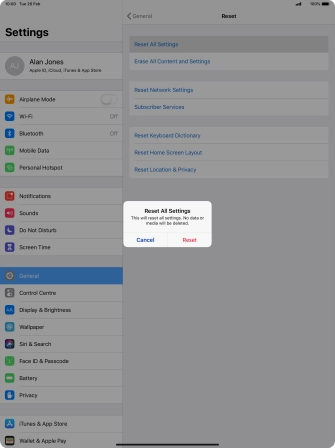 Press Reset. Wait a moment while the factory default settings are restored. Follow the instructions on the screen to set up your tablet and prepare it for use.
