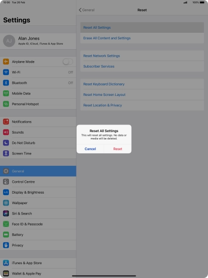 If you choose to restore settings and data, settings, contacts, audio files, video clips and appointments are deleted. When you've restored settings and data, you need to activate your tablet.