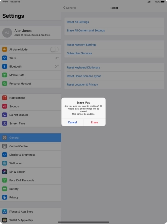 Press Erase. Wait a moment while the factory default settings are restored. Follow the instructions on the screen to set up your tablet and prepare it for use.