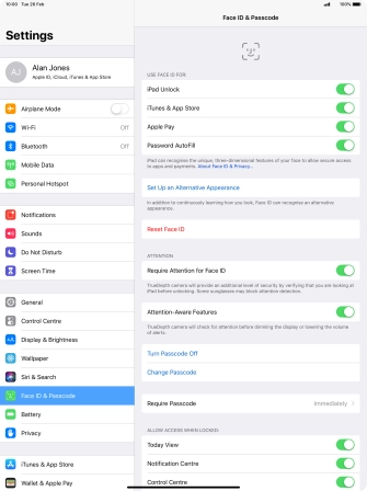 Press Face ID & Passcode.