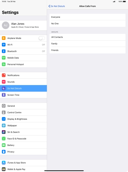 Press the required setting to select which contacts can call you even though Do Not Disturb is turned on.