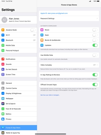 You can set your tablet to automatically download apps and app content that you have downloaded on your other devices. To use the function, you need to activate your Apple ID.