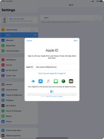 An Apple ID gives you access to a number of services on your tablet such as iCloud, App Store and iTunes. Before you can activate an Apple ID on your tablet you need to set up your tablet for internet.