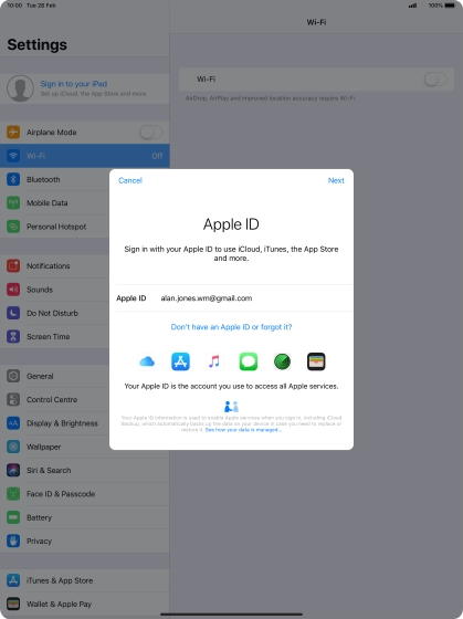 Activate Apple ID on your tablet