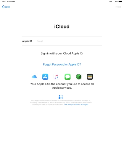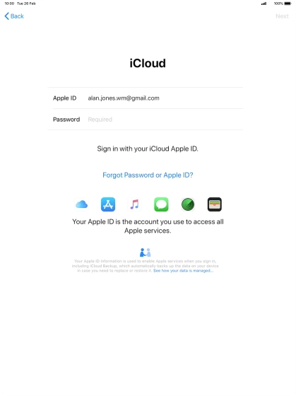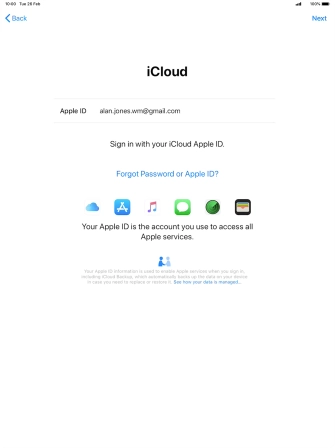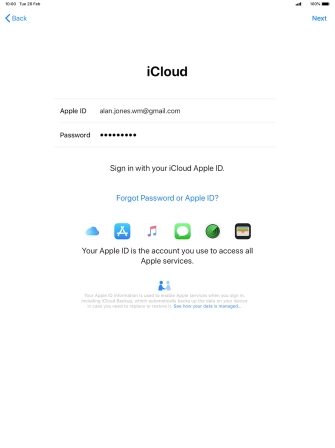 Press the field next to "Apple ID" and key in the username for your Apple ID.