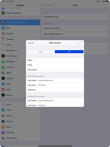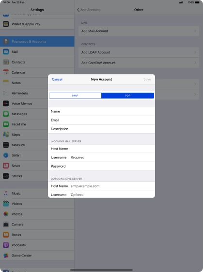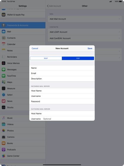 Set up your tablet for POP3 email