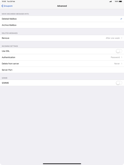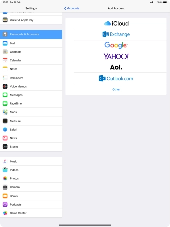 Press the required email account and follow the instructions on the screen to select settings for the specific account.