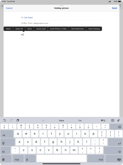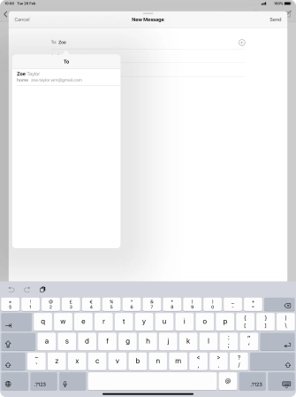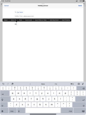 Press the text input field and write the text for your email message.