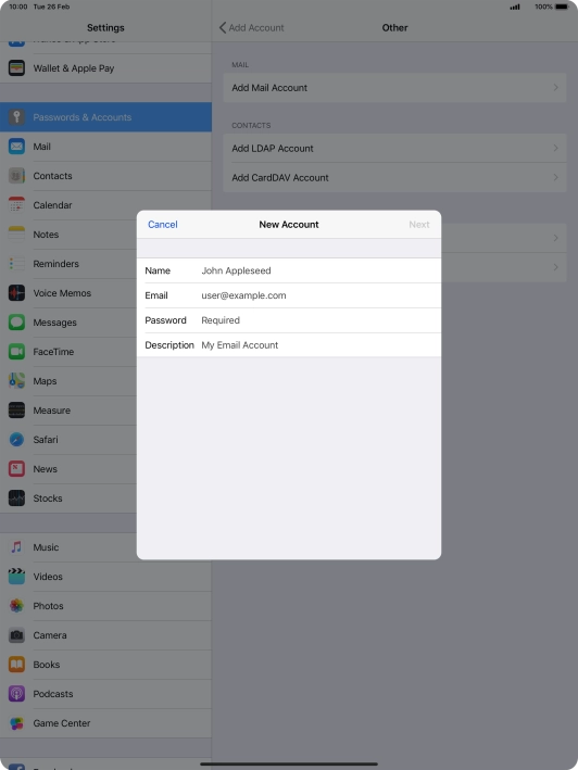Press the name of the email account you've just set up.