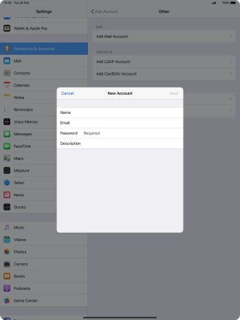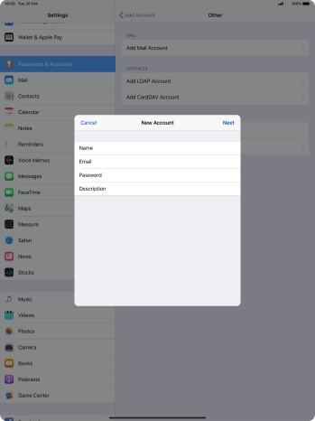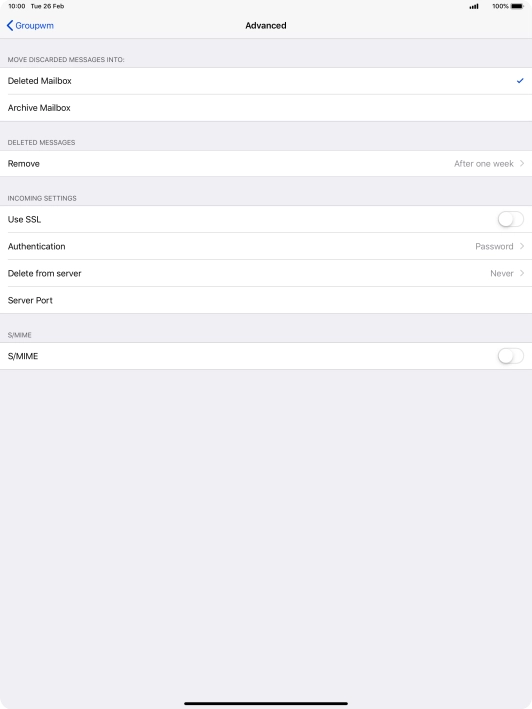 Press the required email account and follow the instructions on the screen to select settings for the specific account.