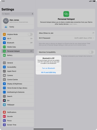 If Wi-Fi is turned on, press Wi-Fi and USB Only.