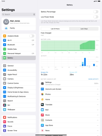 Some functions on your tablet use a lot of power and therefore significantly reduce the battery life. You can reduce the power consumption by turning on low power mode.