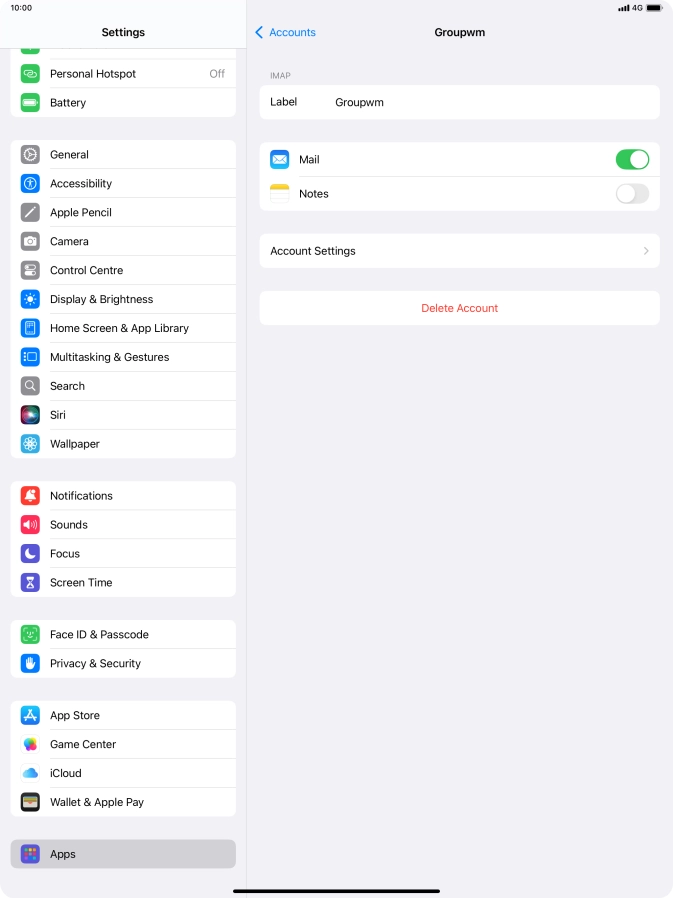 Press the name of the email account you've just set up.