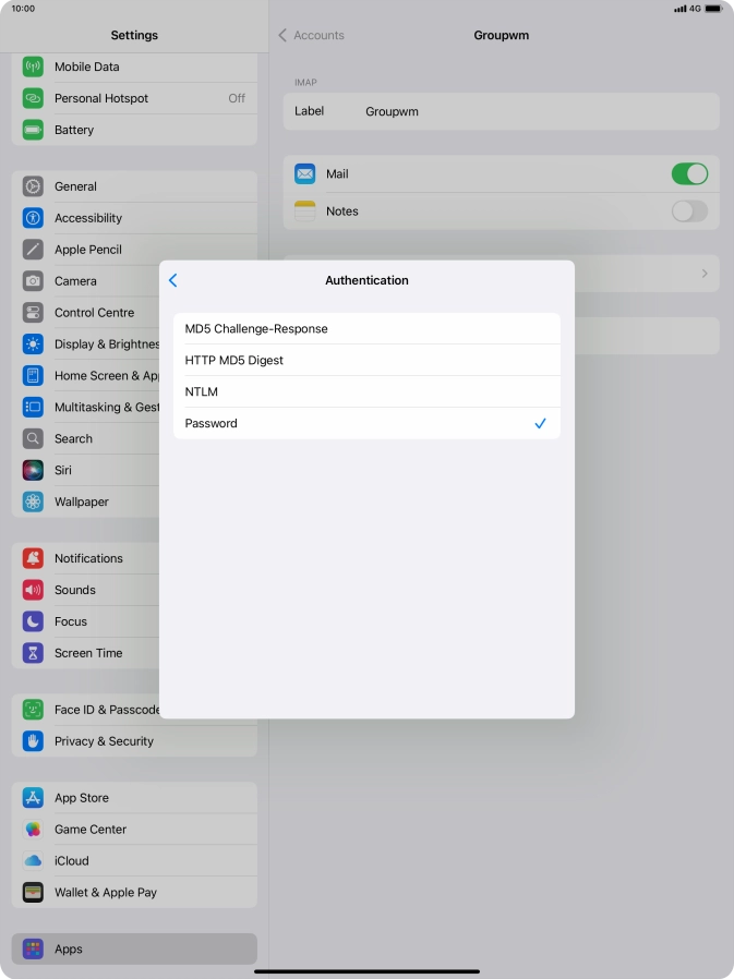 Press Password and key in the password for your email account.