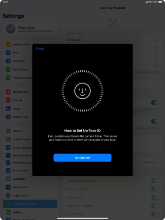 Press Get Started and follow the instructions on the screen to set up Face ID.