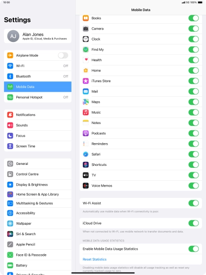 Press the indicator next to "Wi-Fi Assist" to turn the function on or off.