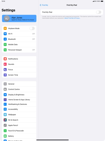 Find My iPad enables you to find your tablet if you lose it or you can lock it should it get stolen. To select settings for Find My iPad, you need to activate your Apple ID on your tablet.