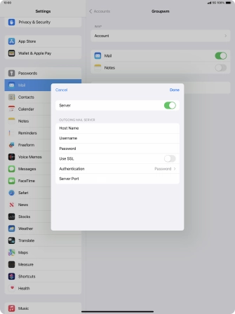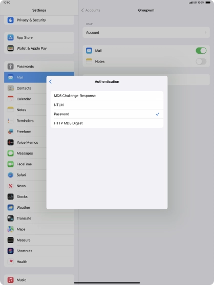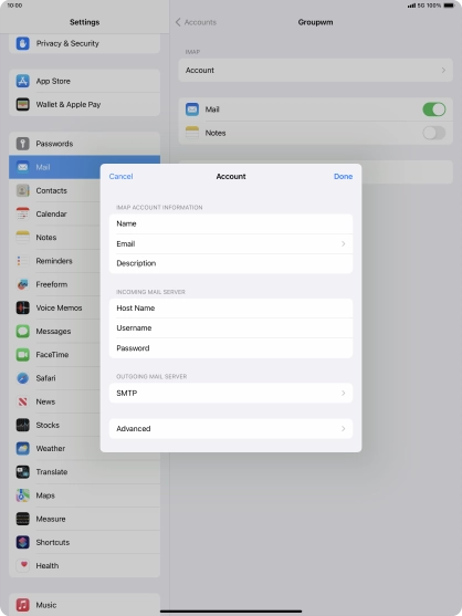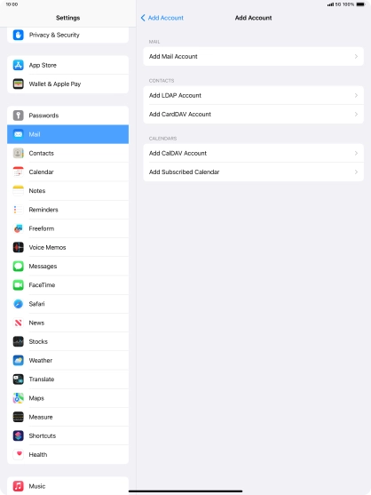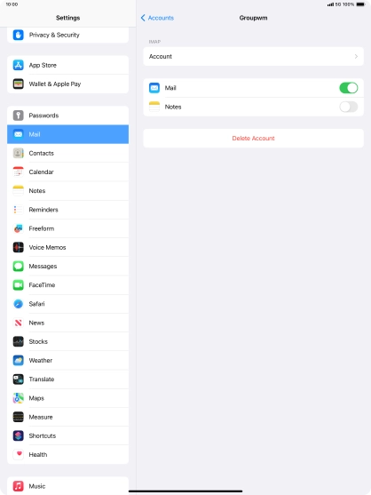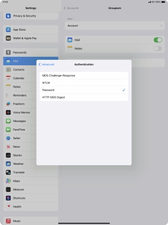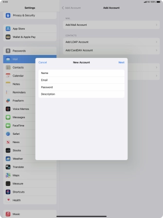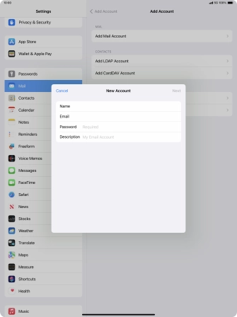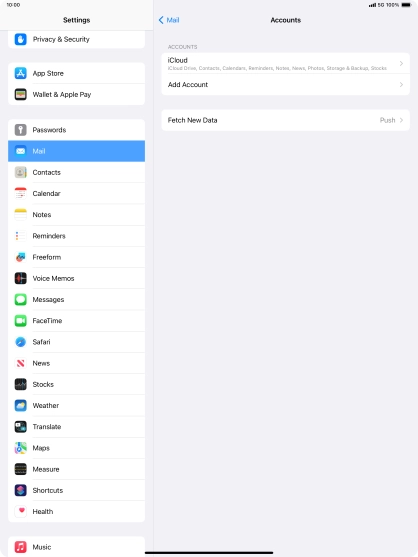 Press the required email account and follow the instructions on the screen to select settings for the specific account.