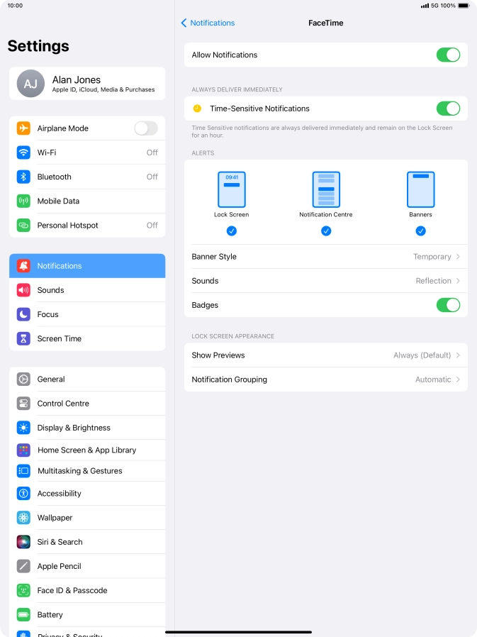 Press the indicator next to "Time-Sensitive Notifications" to turn the function on or off.