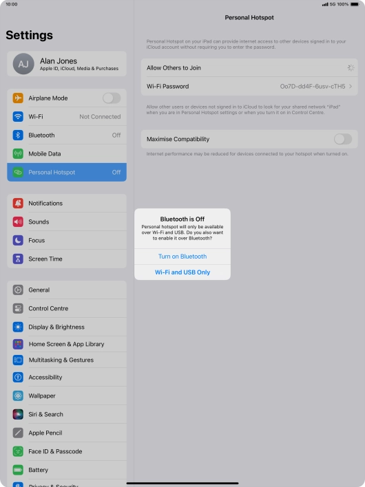 I can't use my Apple iPad Pro 12.9 (2021) iPadOS 17 as a personal hotspot