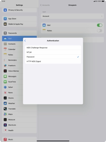 Press Password and key in the password for your email account.