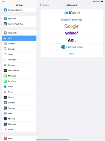 Press the required email account and follow the instructions on the screen to select settings for the specific account.