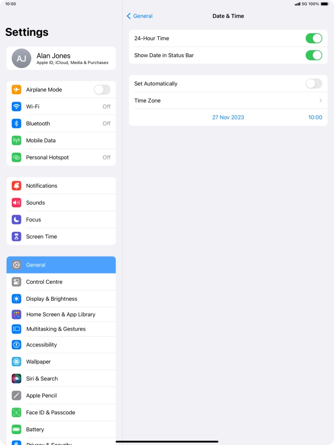 To send and receive iMessages, time zone, date and time need to be correctly set on your tablet.